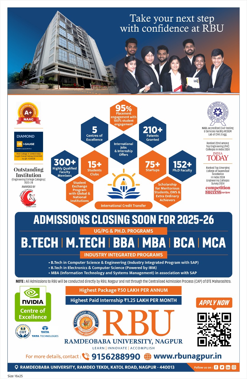 Ramdeobaba University is a premier institution known for academic excellence, innovation, and holistic development. With world-class infrastructure, top-tier faculty, and strong industry linkages, we prepare students for a successful future