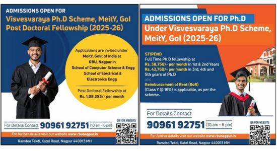 Visvesvaraya Post-Doctoral and Ph.D. Programme, MeitY, Govt. of India at Ramdeobaba University (RBU)
