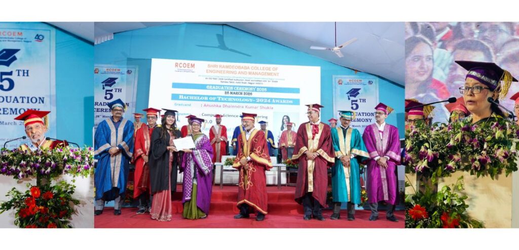 उत्कृष्टता का लक्ष्य रखें, मूल्यों को अपनाएं और राष्ट्र के भविष्य का निर्माण करें,” ऐसा आह्वान पद्मश्री पुरस्कार विजेता एवं आरसीओईएम के प्रबंधन मंडल के अध्यक्ष श्री सत्यनारायण नुवाल ने किया। वे नागपुर स्थित श्रीरामदेवबाबा कॉलेज ऑफ इंजीनियरिंग एंड मैनेजमेंट (RCOEM) में आयोजित 5वें दीक्षांत समारोह में बोल रहे थे। यह समारोह रामदेवबाबा कैंपस, काटोल रोड, नागपुर में उत्साहपूर्वक संपन्न हुआ।