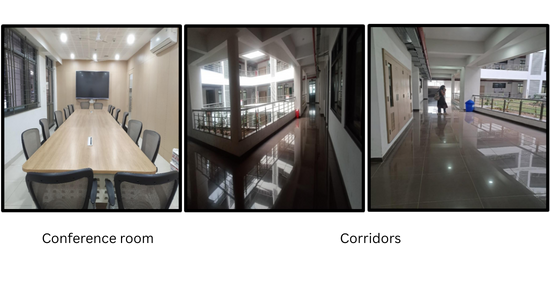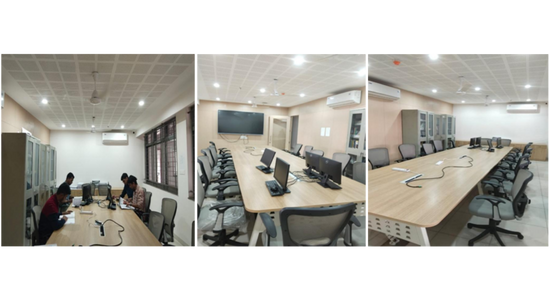 The department has spacious and well-maintained infrastructure with adequate number of classrooms, tutorial rooms, laboratories, staff cabins, department library, common room, Conference room etc. All the laboratories, corridors and classrooms are well ventilated with ample natural light. The Labs and classrooms have good interior with false ceiling, wide green boards, white boards, dais & interactive display panel. Audio-video system, microphone, speakers and internet connectivity are provided in all labs and classrooms. There is one seminar hall and 5 conference room.