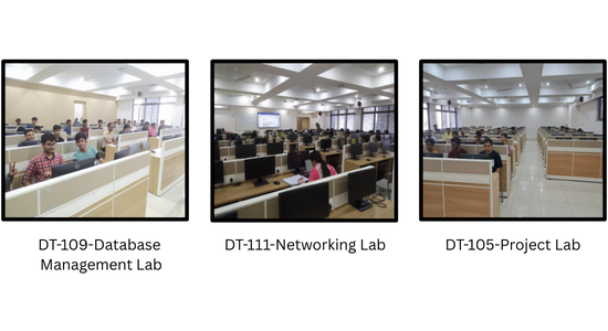 Department of Computer Science & Engineering and Emerging Technologies Department has good laboratory facilities for the effective implementation of Teaching-learning process. There are total Eighteen (10) laboratories as DT 105, DT 109, DT 111, DT 205, DT 209, DT 211, DT 306, DT-704, DT-705, DT 903, DT 904, DT 1005, DT 1009, DT 1011 for Undergraduate program with investment of ₹ 34,152,921,00 (Approx.) These laboratories play a crucial role in bridging the gap between theoretical knowledge and practical application, enabling the students to gain hands-on experience in various domains of computing. All the laboratories are equipped with the state-of-the-art infrastructure. These labs are equipped with cutting-edge infrastructure, high-performance computing systems, and the latest software tools to support various domains such as Artificial Intelligence, Machine Learning, Data Science, Networking, Cybersecurity, Cloud Computing, and Software Development. All the laboratories have trained technical personnel to assist in lab activities and ensure smooth conduction of practical sessions. They will ensure that all systems and software are up to date, troubleshoot technical issues, and maintain a smooth lab environment. The well-equipped and efficiently managed laboratory facilities ensure that students receive practical exposure and stay up to date with emerging technologies, preparing them for industry and research-oriented careers in Computer Science & Engineering.