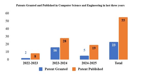 Department LinkAbout the Department PO’s/ PSO’s / PEO’s Programme Undergraduate Bachelor of Computer Applications (BCA) Postgraduate Master of Computer Applications (Specialisation – Artificial Intelligence & Machine Learning) Research Scheme and Syllabus Faculty Profile (Computer Science and Applications) Distinguished Alumni Infrastructure Research Activities Publications Patents Funded Projects Placements Best Practices Students’ Clubs PATENTS Patents Details Sr. No. Patent Granted Patent Published Total 1 2022-2023 2 8 10 2 2023-2024 16 28 44 3 2024-2025 5 19 24 Total 23 55 78