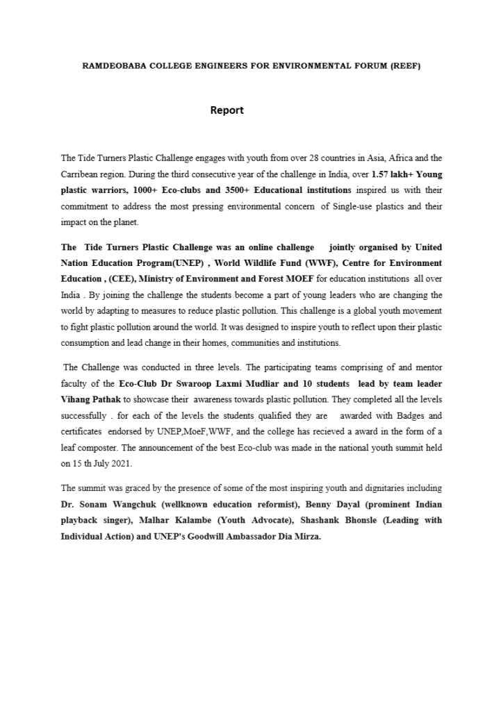 REEF - RAMDEOBABA COLLEGE ENGINEERS FOR ENVIRONMENT FORUM