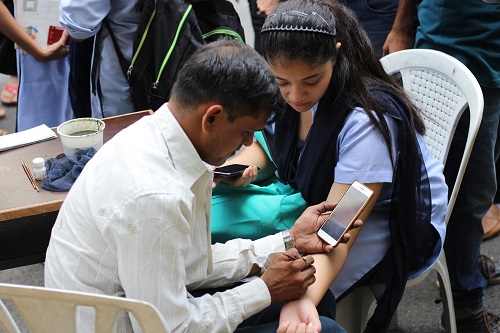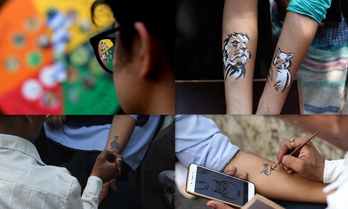 Students making tattoo