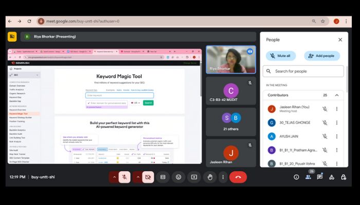 The session began with an introduction to SEO and its importance in enhancing online visibility. Ms. Bhorkar explained how SEO principles can be applied to writing and stressed the significance of structuring content strategically for improved search rankings. A major part of the lecture focused on keyword research, introducing different types of keywords, user intent, and the role of keywords in optimizing content. She also demonstrated the use of tools like Google Keyword Planner, Ubersuggest, and SEMrush.