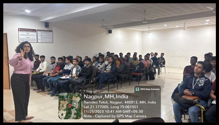The Department of Humanities organized a guest lecture for III Semester B.Tech (IT) students on 25th November 2023. The lecture was delivered by Ms. Shubhada Jambhekar, Senior HR professional, Corporate Soft Skills Trainer, and alumnus of IT Dept. RCOEM. The session was coordinated by Dr. Akanksha Deshpande and attended by 70 students.