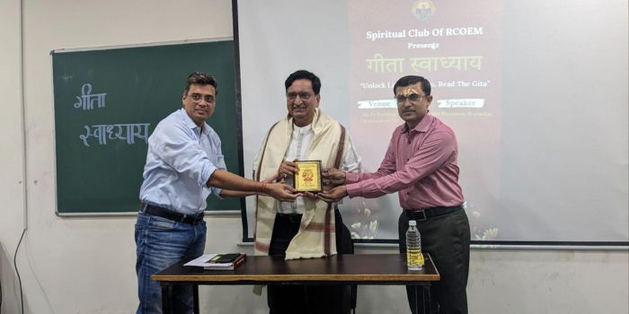 Gita Swadhaya :- A 6-week long event was held at Ramdeobaba University, Nagpur, where the esteemed speaker Shri ShriniwasWarnekar was invited to share insights on the Bhagavad Gita. He explained 12 chapter of the Bhagavad Gita, offering a deeper understanding of its meaning and significance. Through his teachings, Shri Warnekar helped participants transform their views and perspectives on life, highlighting the importance of the Gita’s wisdom. More than 100 students and faculty members took part in this workshop.